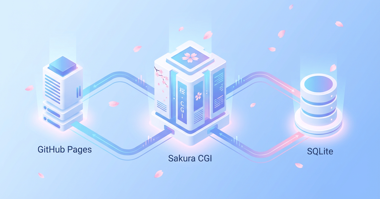 GitHub Pagesの静的サイトに、さくらレンタルサーバーのCGI(Python)とSQLiteを組み合わせて、月131円から動かせるデータベース駆動のウェブアプリを作る方法をまとめています。GitHub Pages内で完結する構成にするための工夫や、403問題の回避策も扱っています。